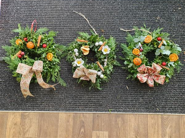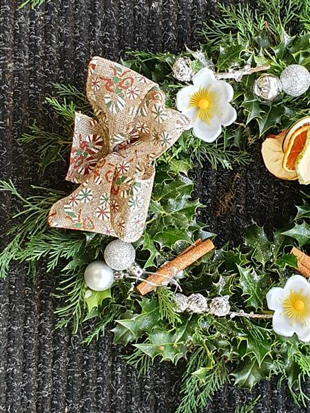 Hand made mossed back with holly Christmas wreath beautifully decorated ready to bring the Christmas spirit into yours or a loved ones home.